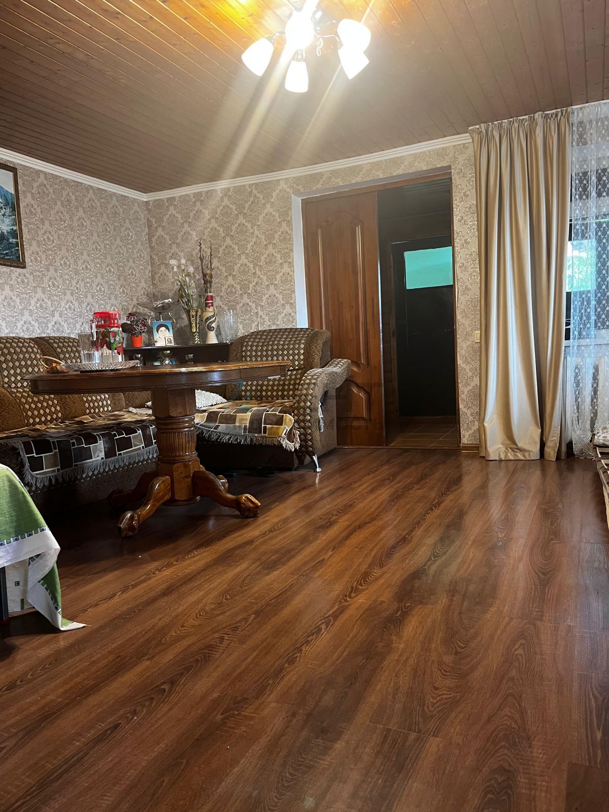 Общ. площадь 96 кв.м на 12 сотках земли по документам, по факту он крайний, и больше, ок. 25 сот. Сзади граничит с нац.перком.