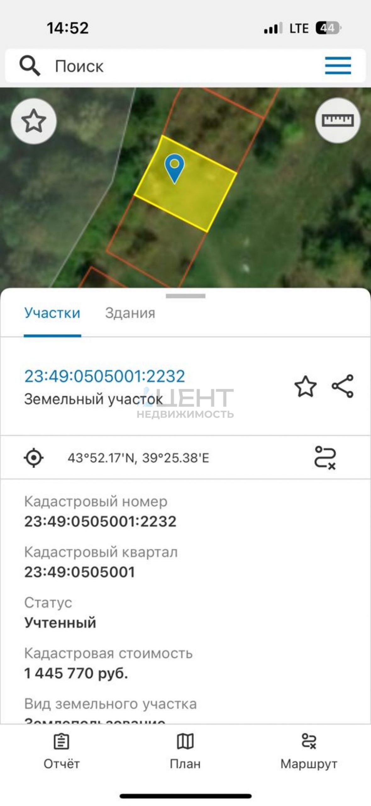 Земельный участок в пос. Каткова щель по ул. Курганная, кад:2232