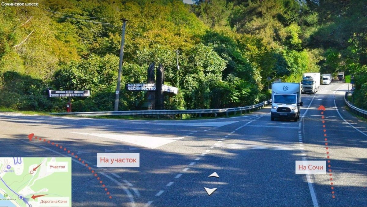 От участка идет хорошая дорога, примыкающая к главной улице — Сочинскому шоссе, что дает отличную транспортную доступность.