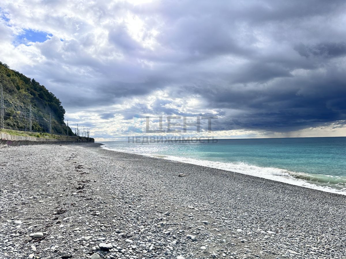 Широкая галечная пляжная полоса.