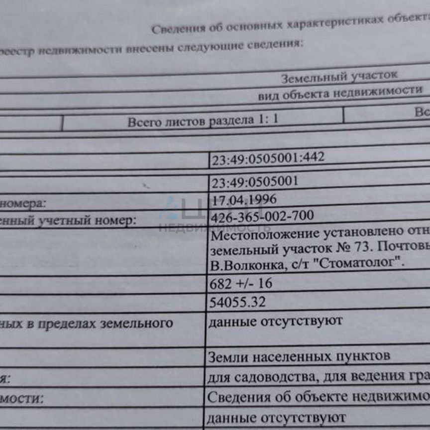 Кадастровый номер 23:49:0505001:442.Номер объекта: #5/545358/9732