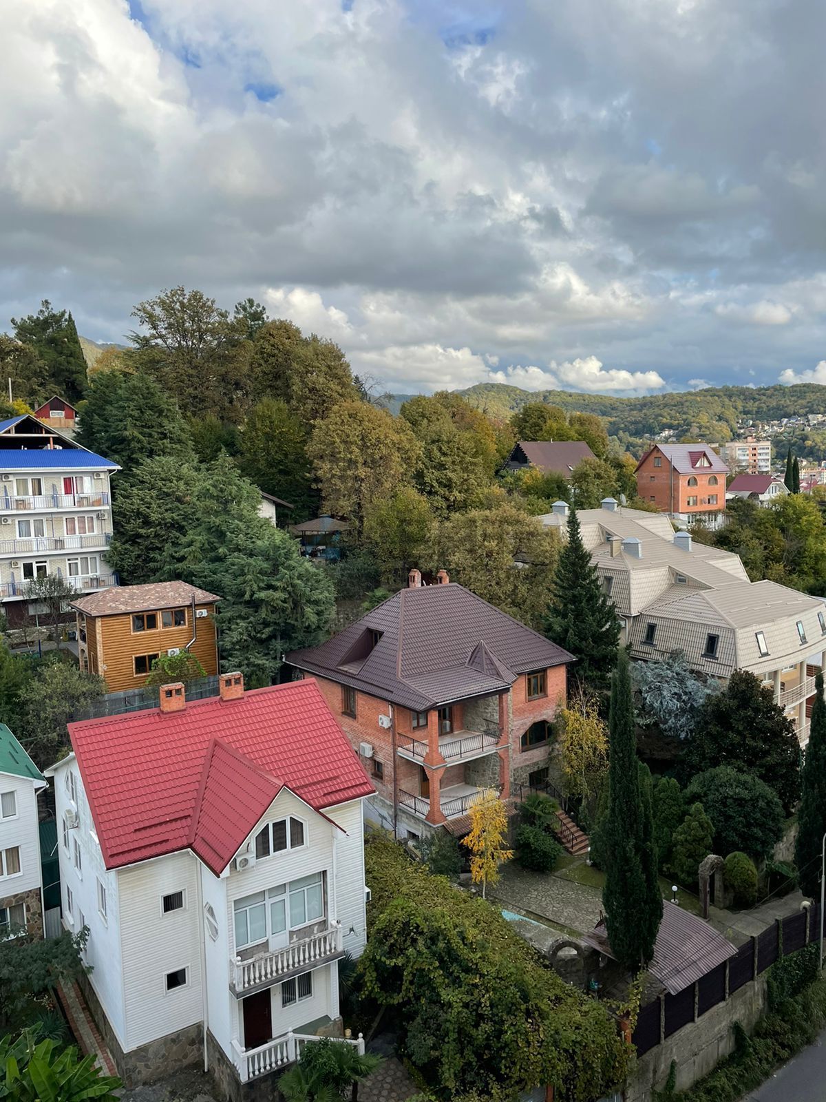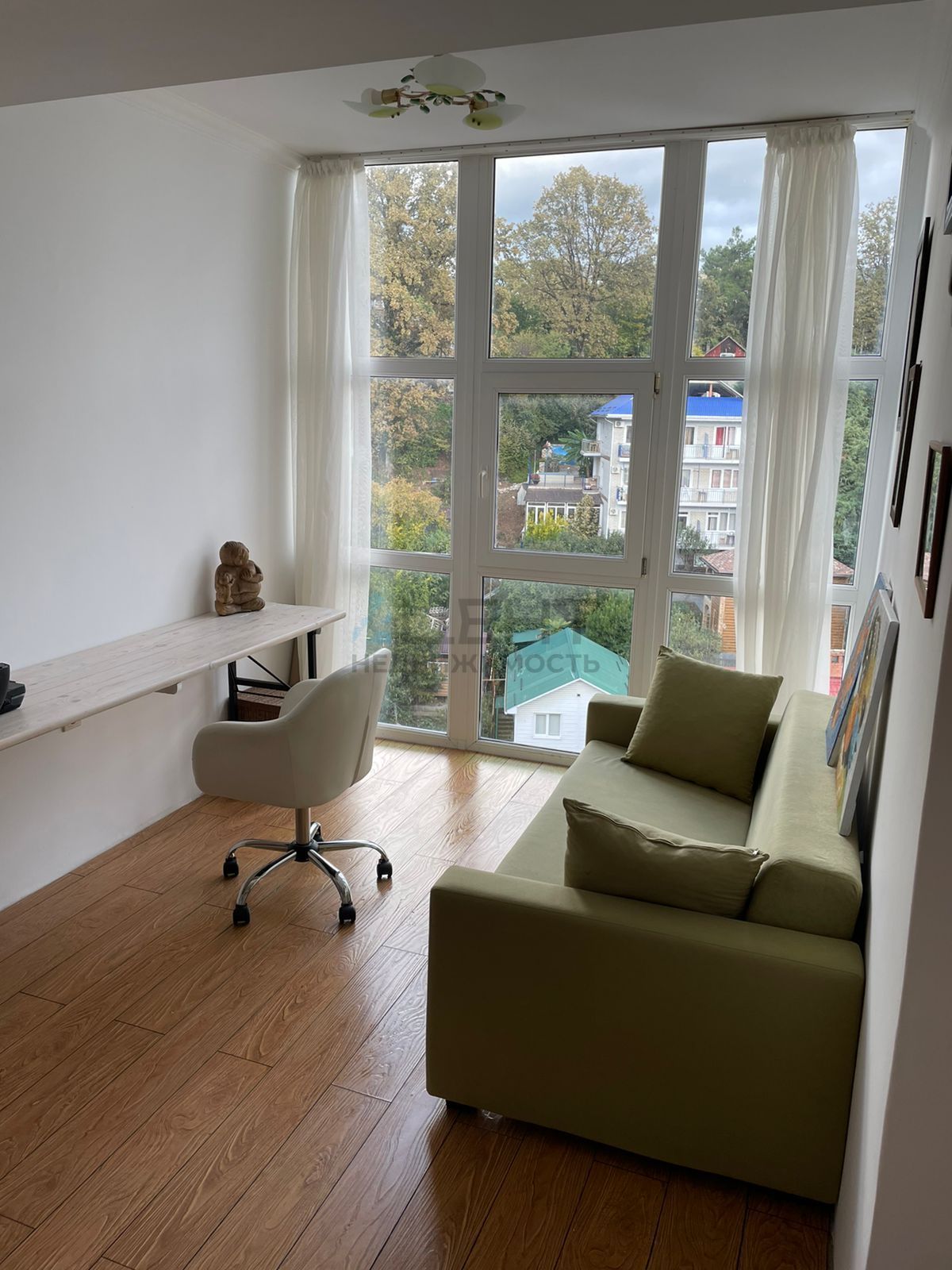 Квартира расположена в тихом районе Сочи не далеко от гор, которые видны из окон комнаты.